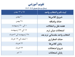 تقویم آموزشی نیمسال دوم سال تحصیلی ۴۰۴-۴۰۳