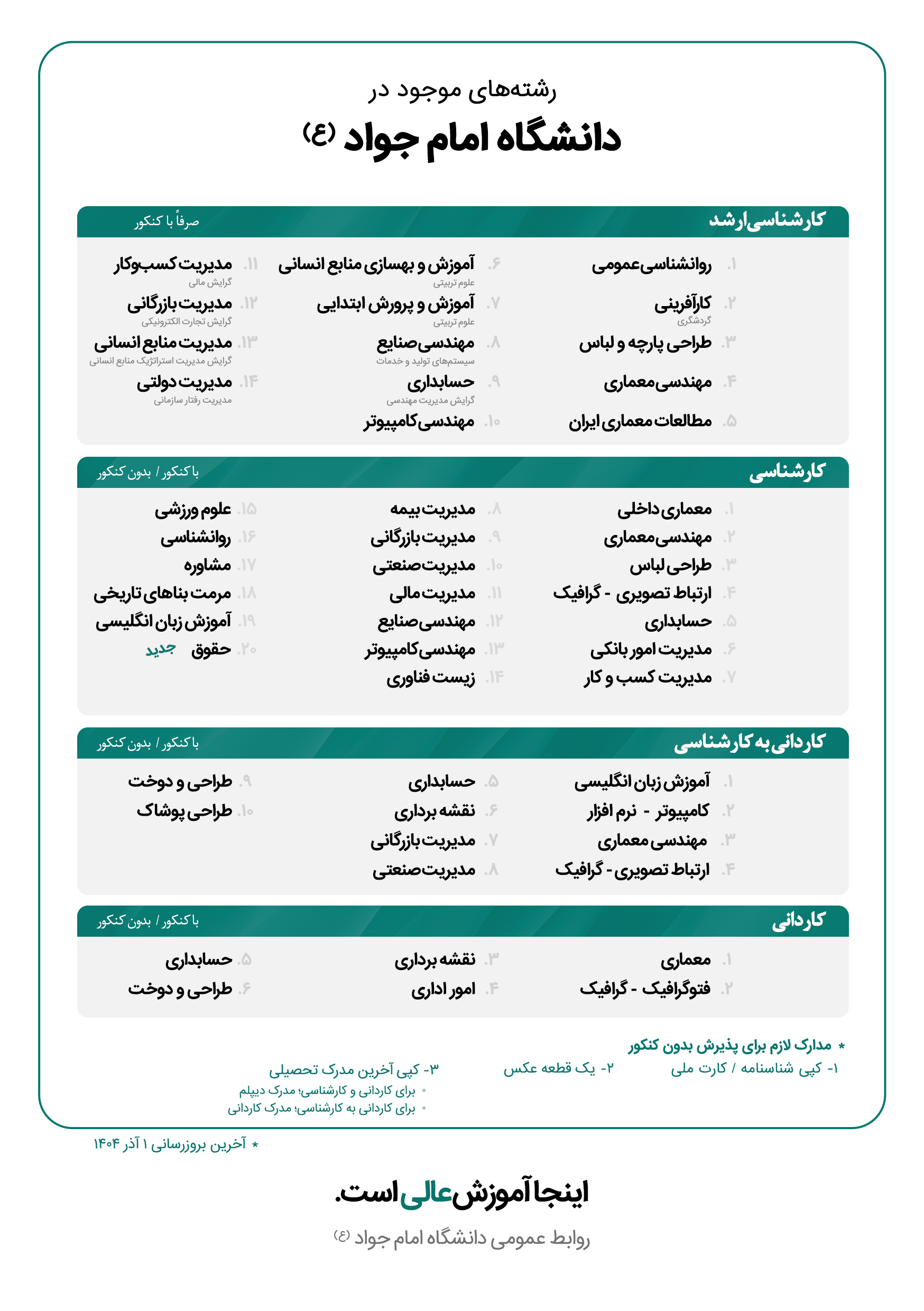 • کارشناسی / ۲۰ کد رشته